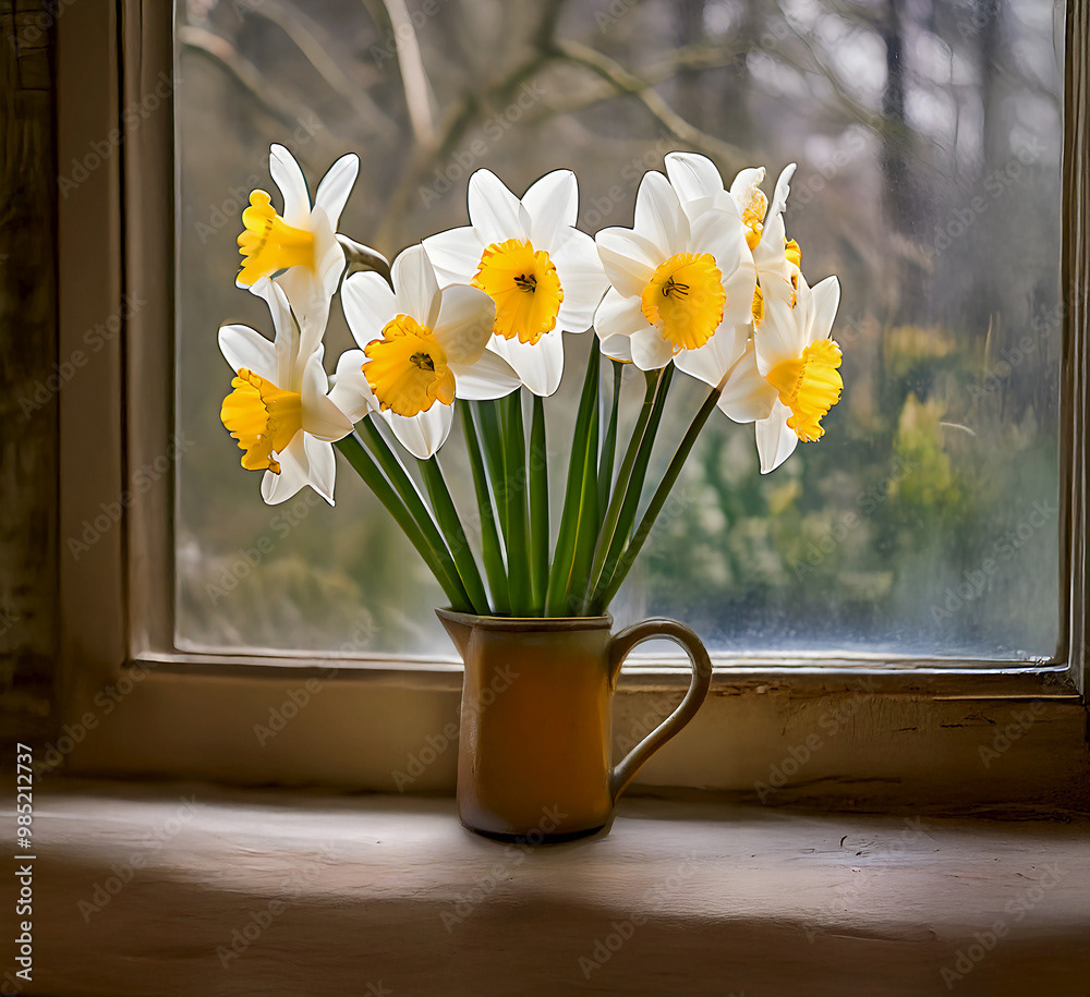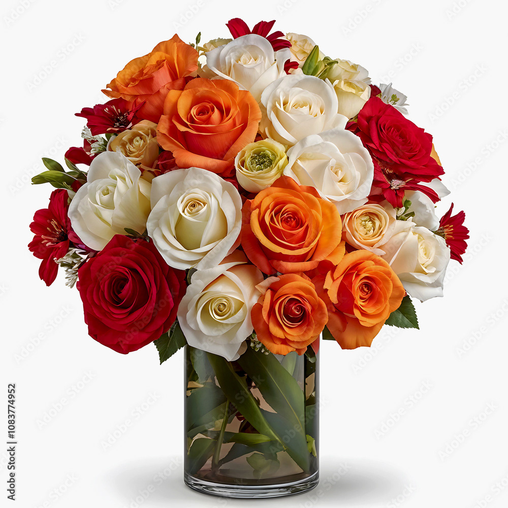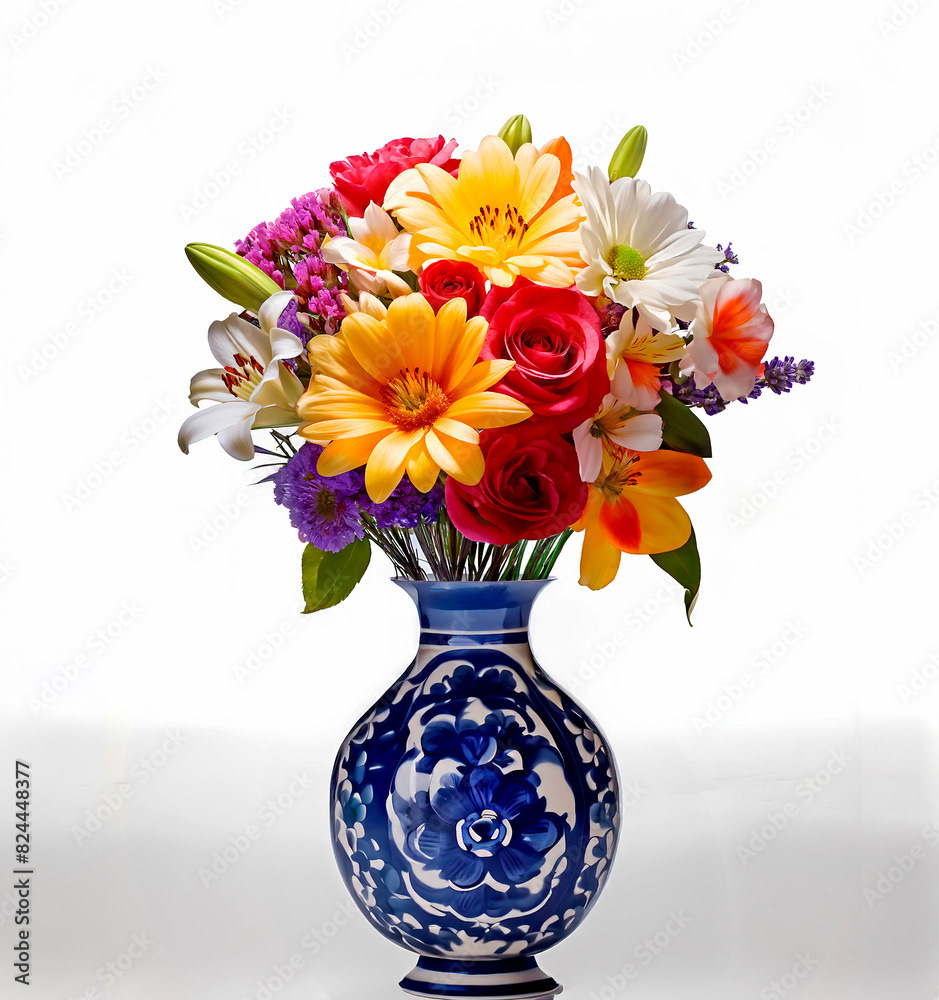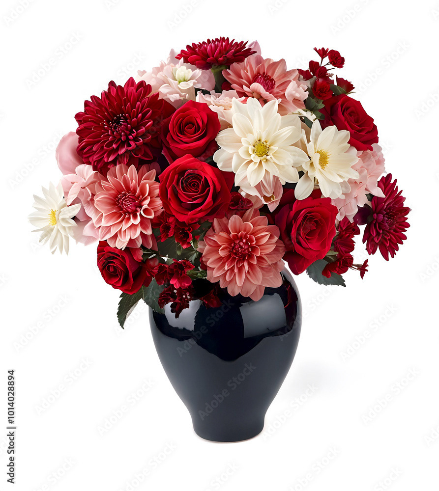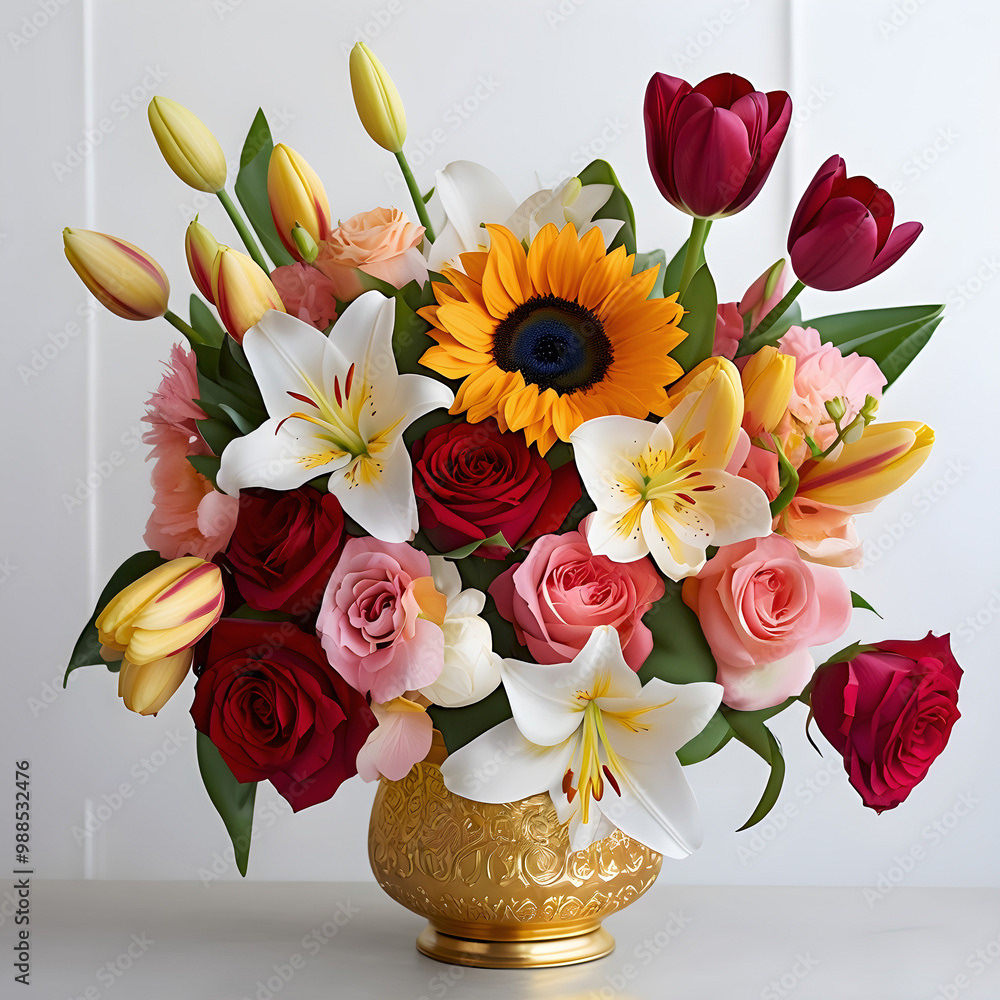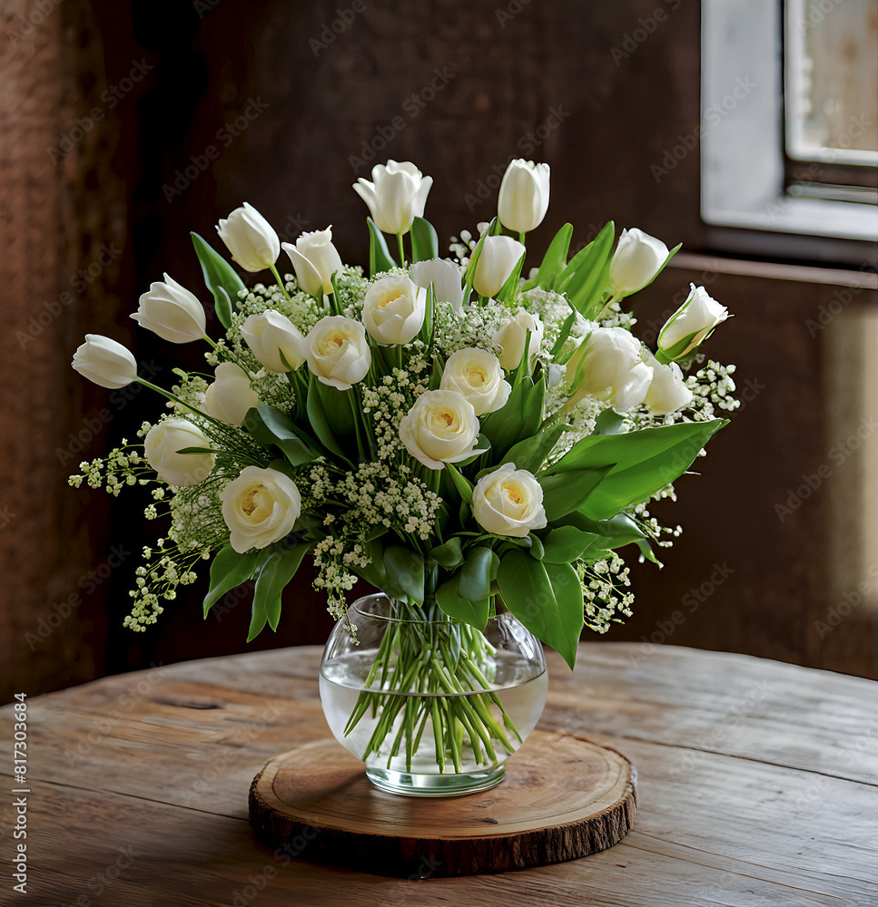 Bouquets and floral arrangements of a wide variety of flowers and styles, in vases, isolated, on windowsills or on furniture, royalty-free downloads for your projects