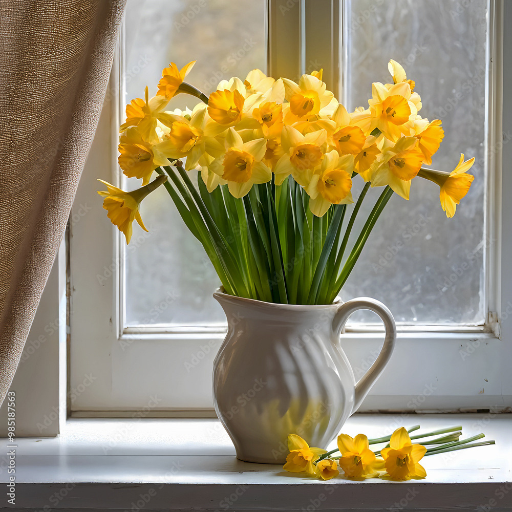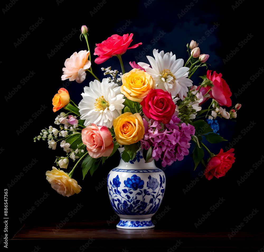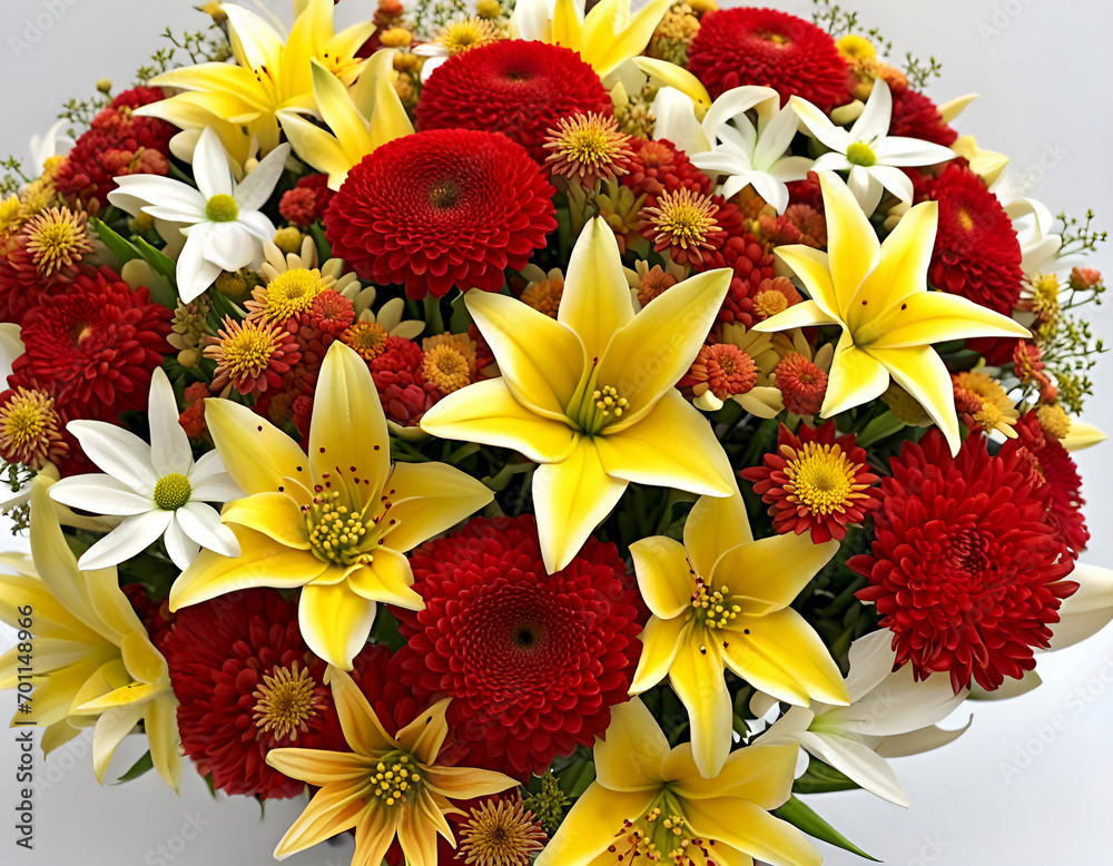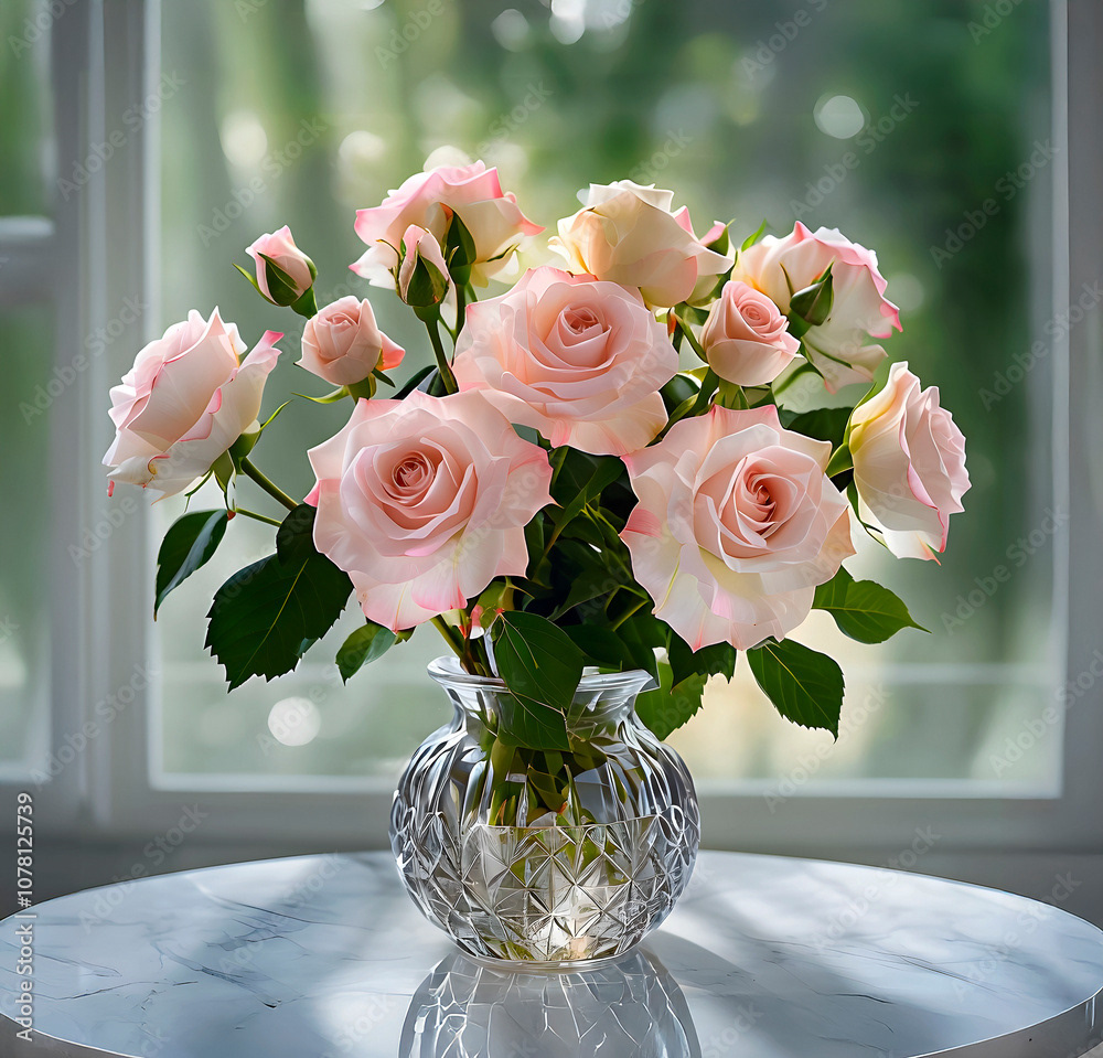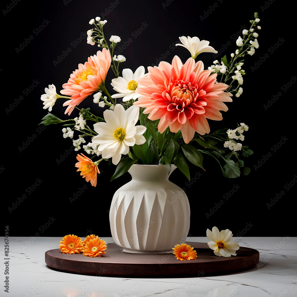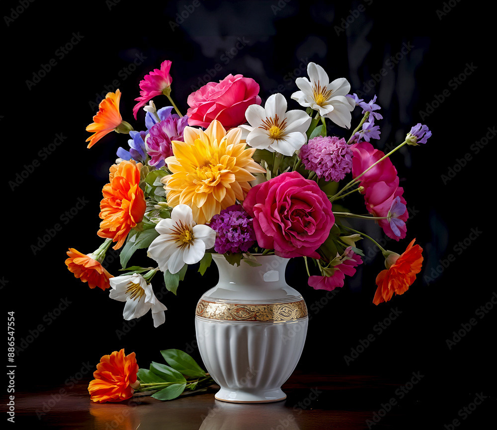Bouquets and floral arrangements of a wide variety of flowers and styles, in vases, isolated, on windowsills or on furniture, royalty-free downloads for your projects