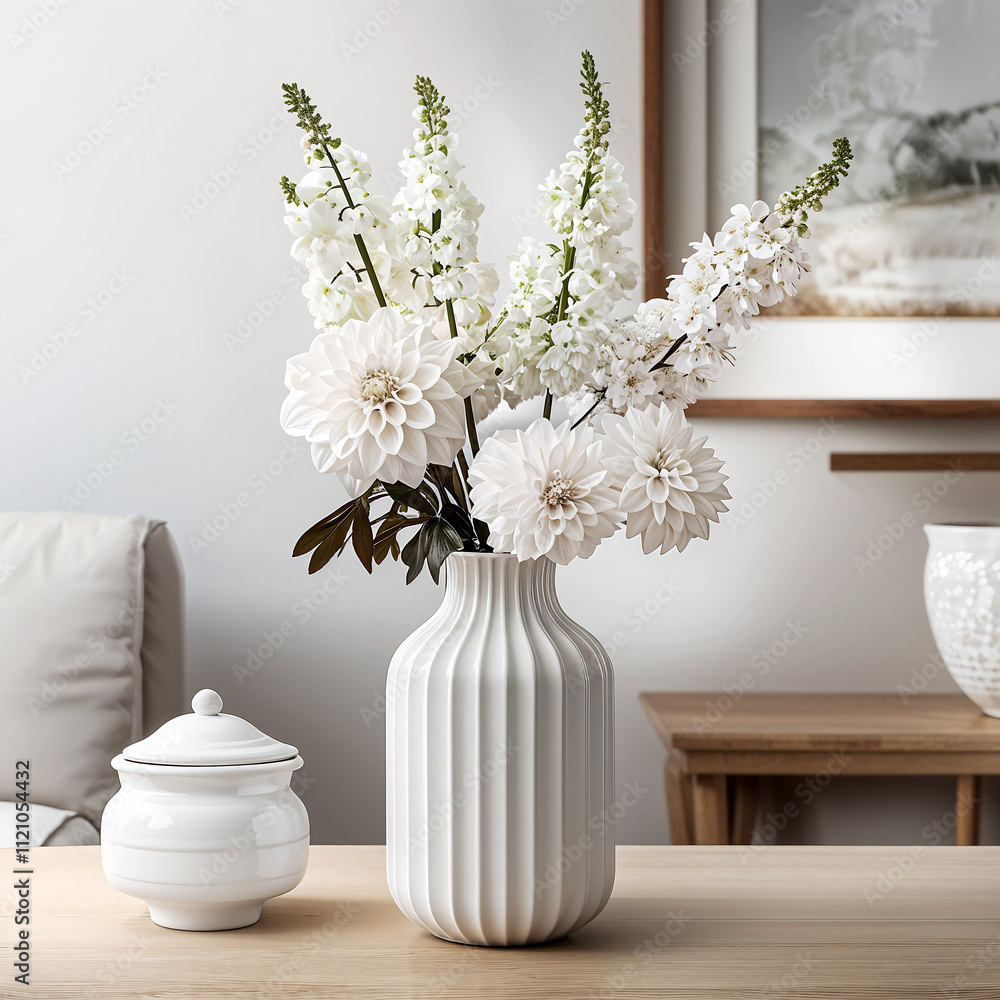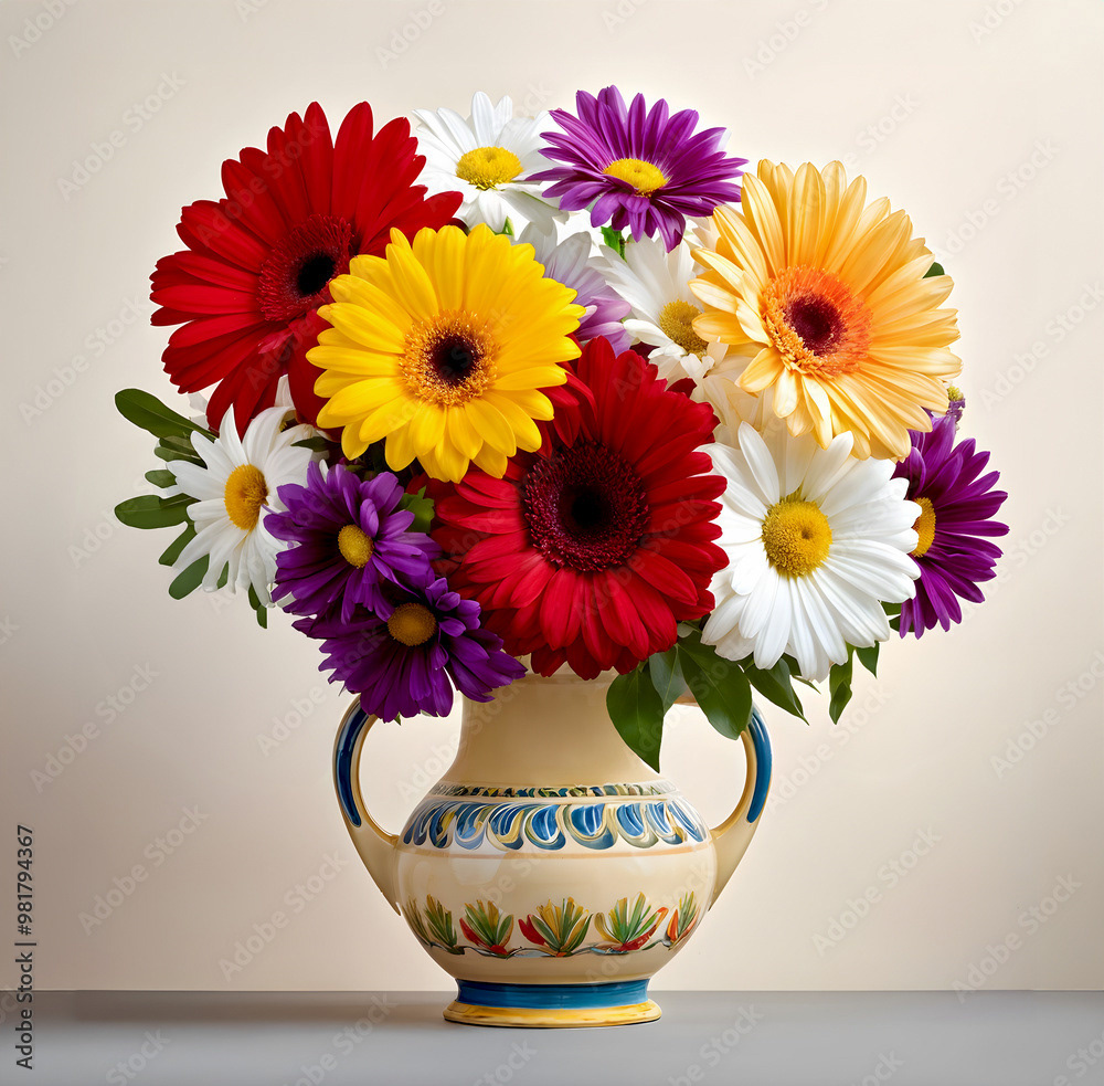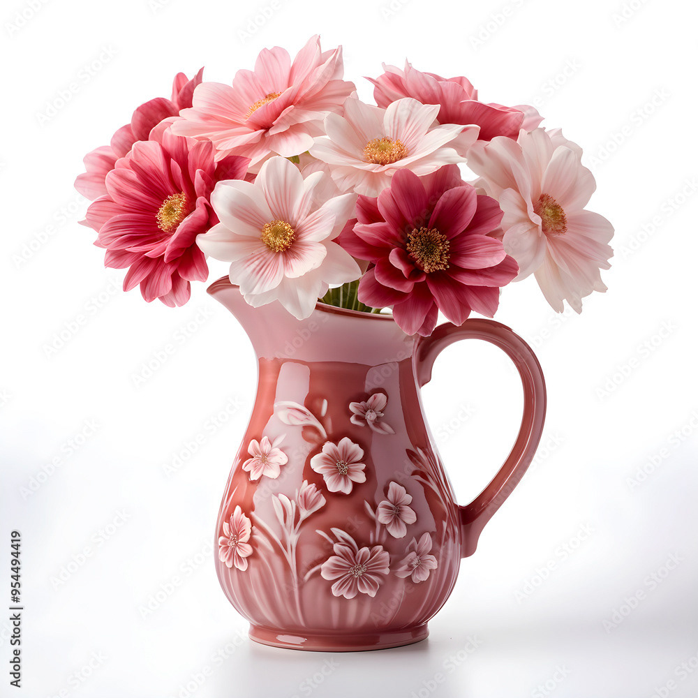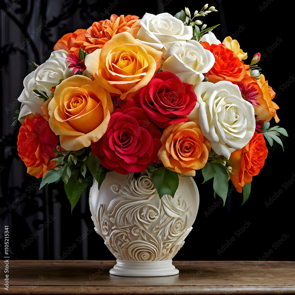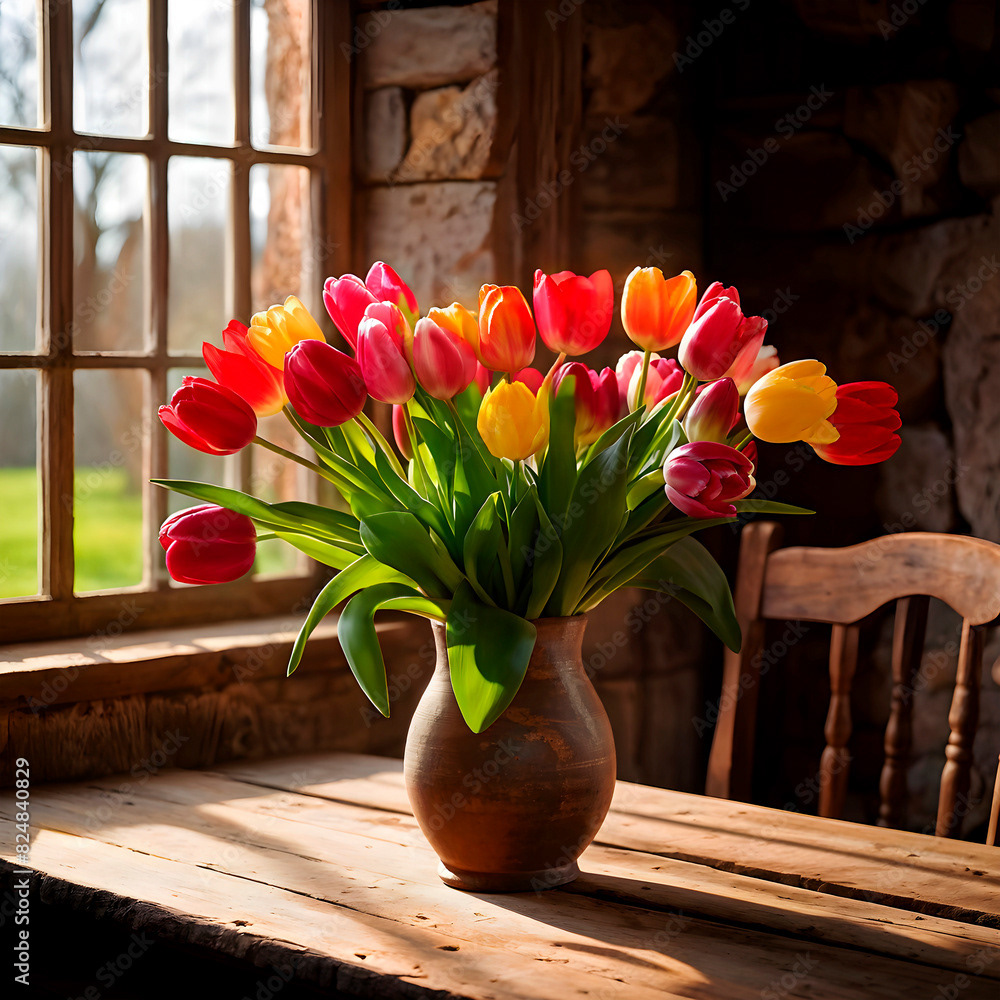 Bouquets and floral arrangements of a wide variety of flowers and styles, in vases, isolated, on windowsills or on furniture, royalty-free downloads for your projects