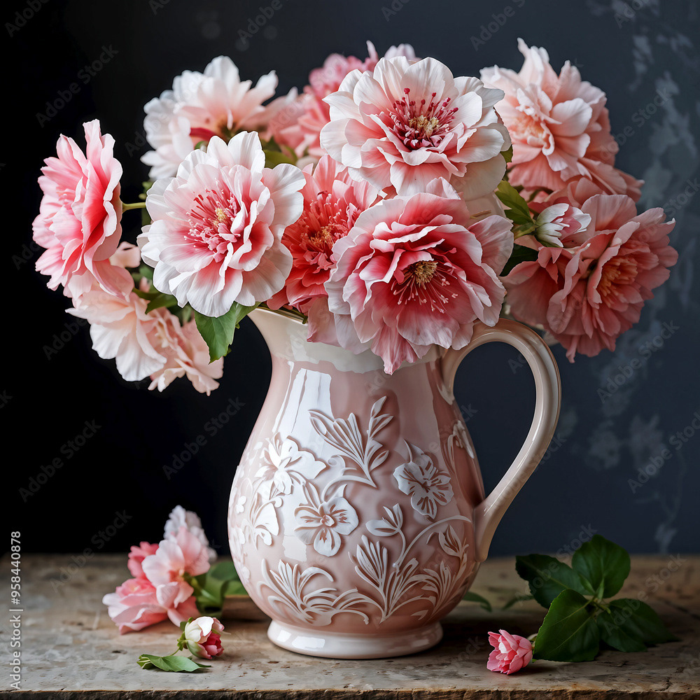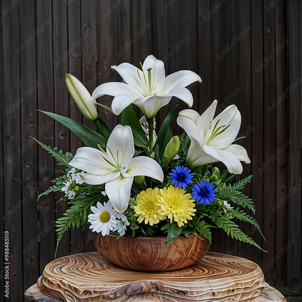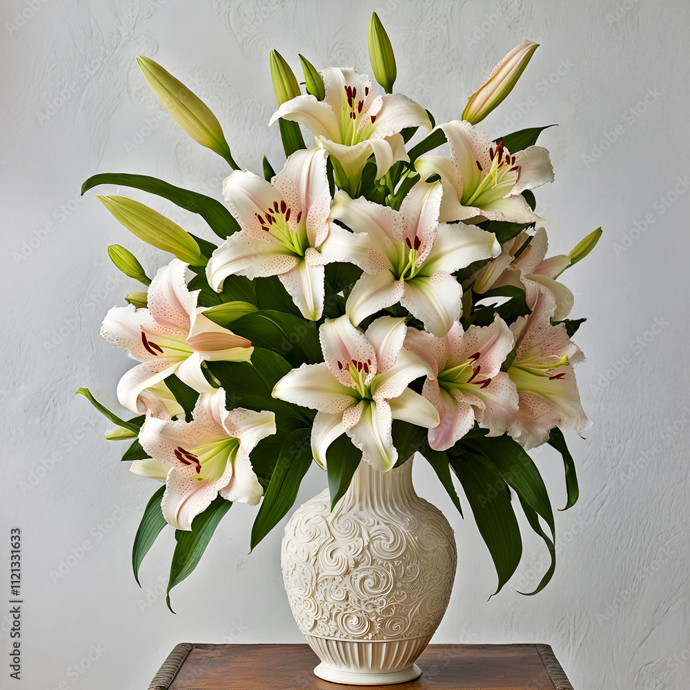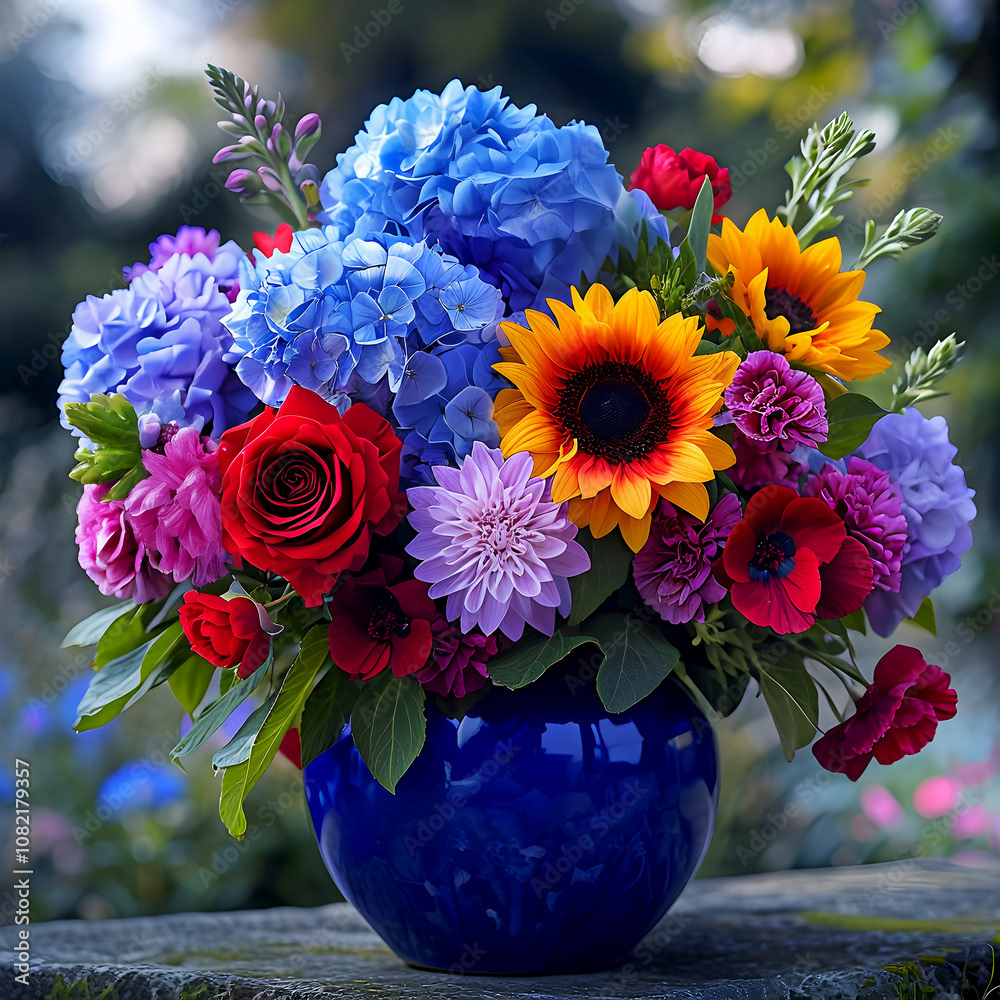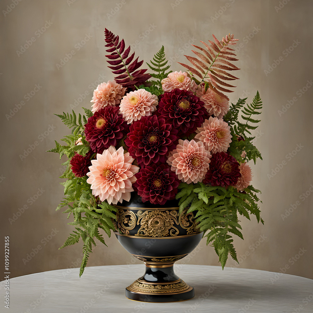 Bouquets and floral arrangements of a wide variety of flowers and styles, in vases, isolated, on windowsills or on furniture, royalty-free downloads for your projects