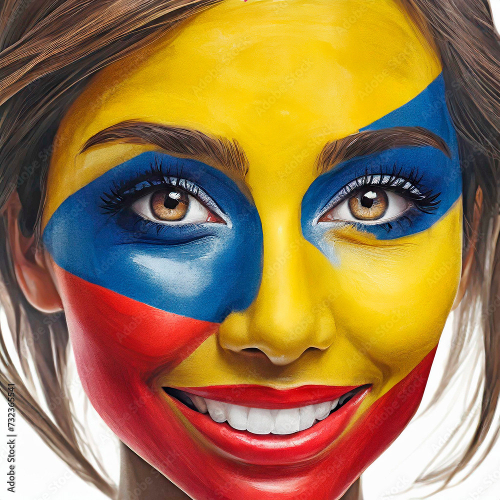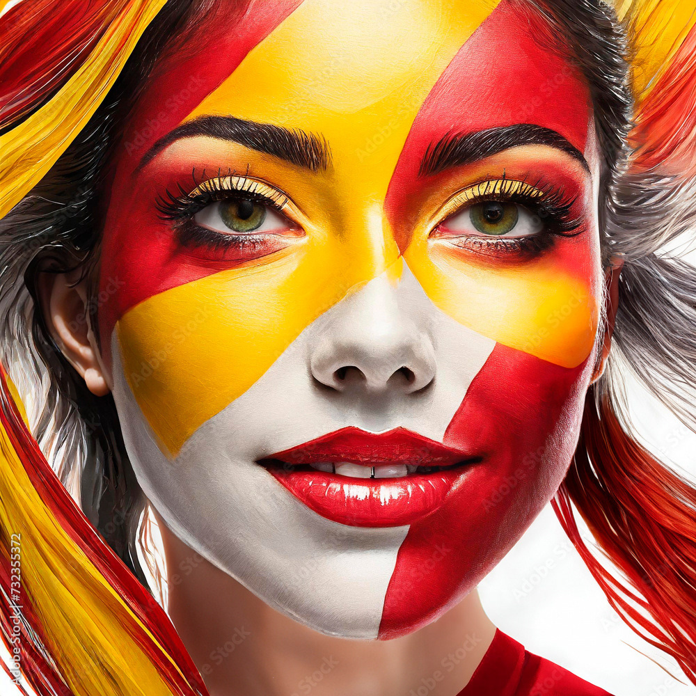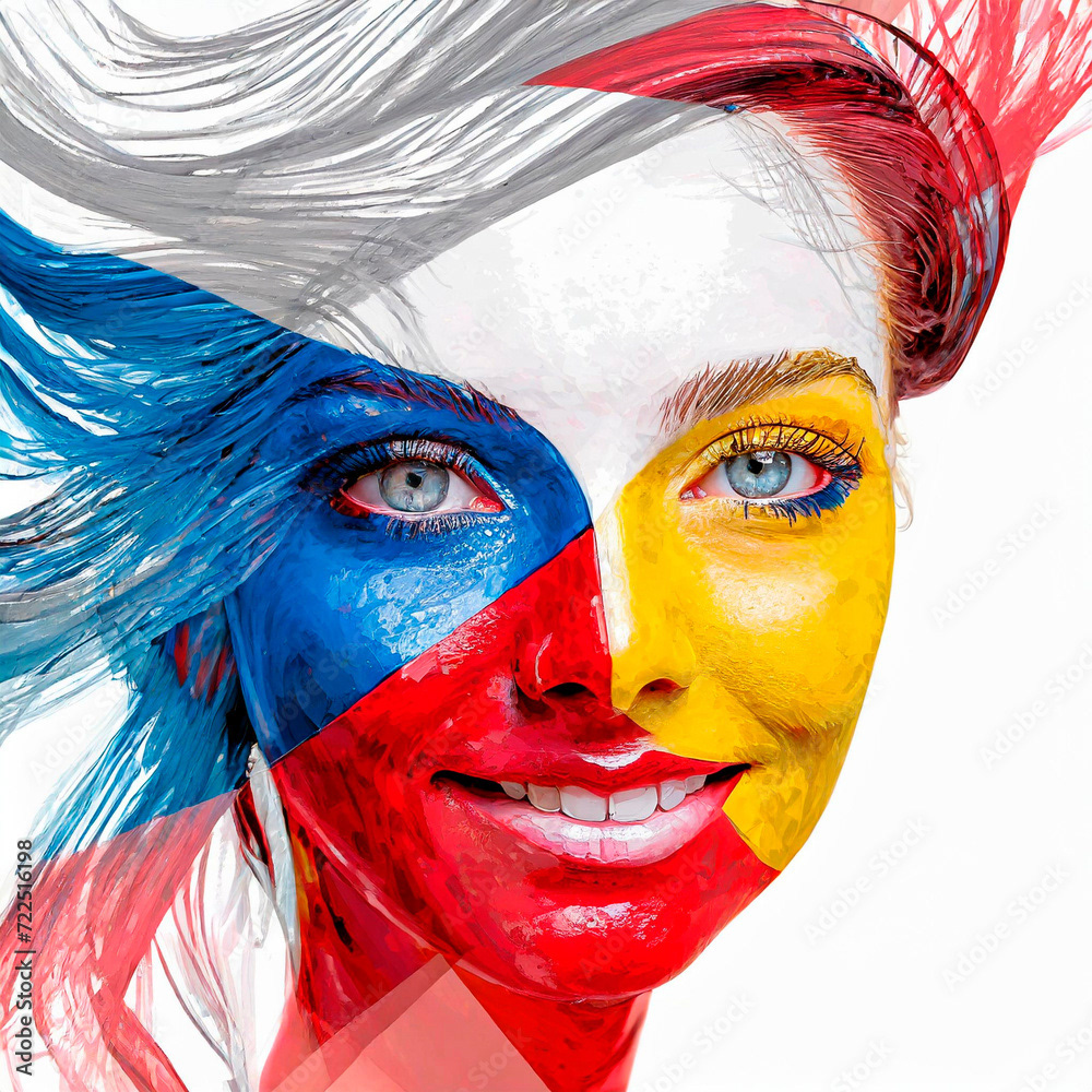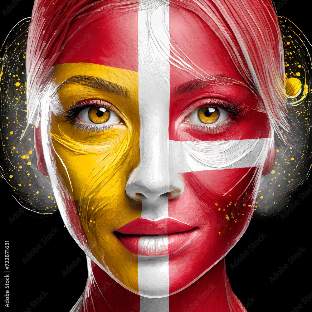 Representation of the flags of different countries of the world, in different forms, flags waving on a flagpole, flag pin, people with their faces painted with the colors of the flag