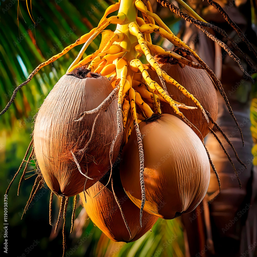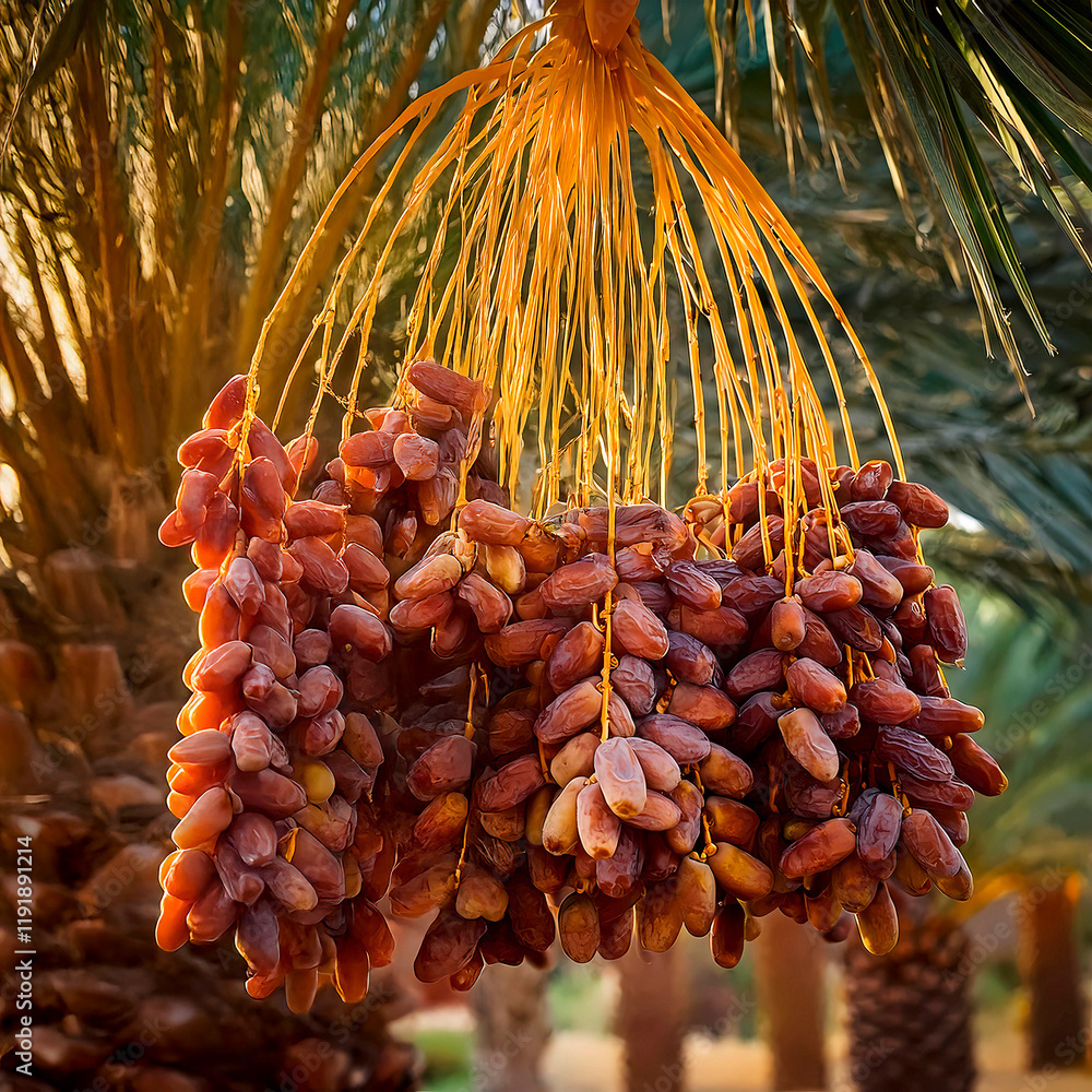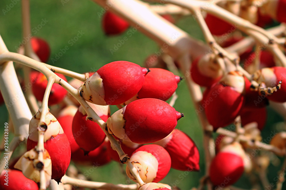 Images of different types of palm trees, landscapes, clusters of palm tree fruits, classified by scientific and common name