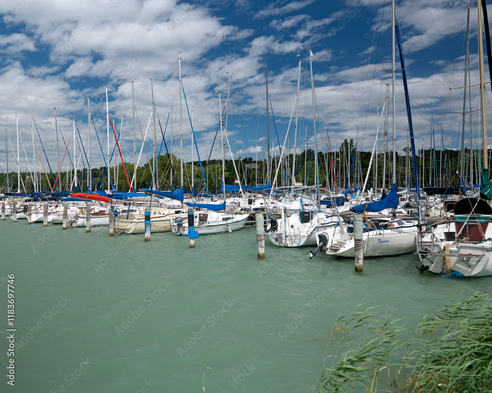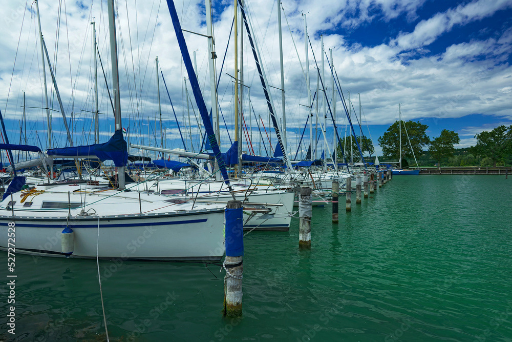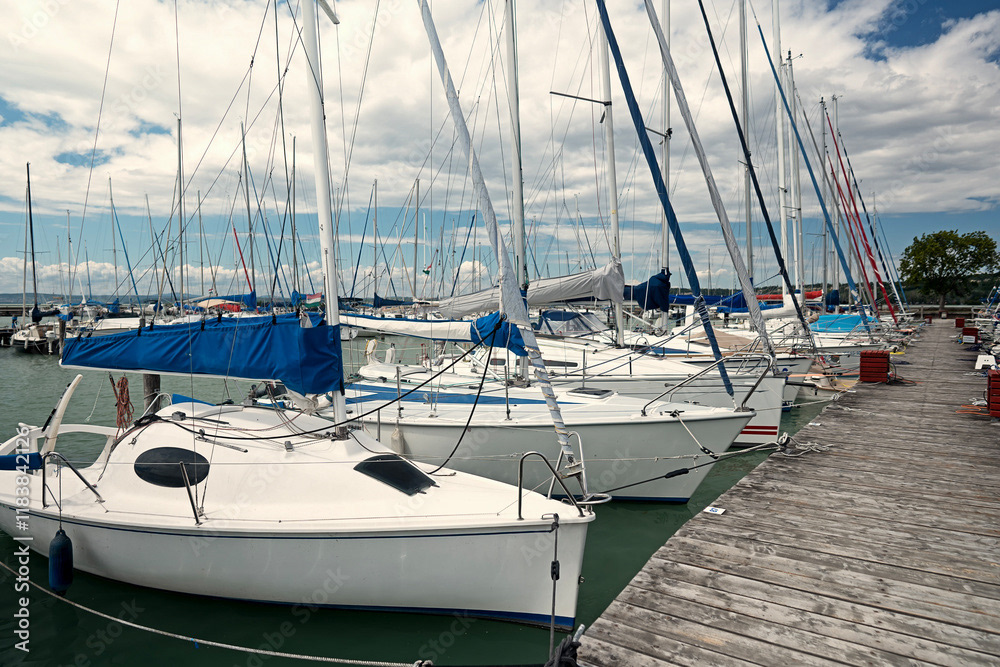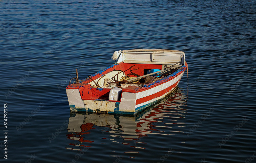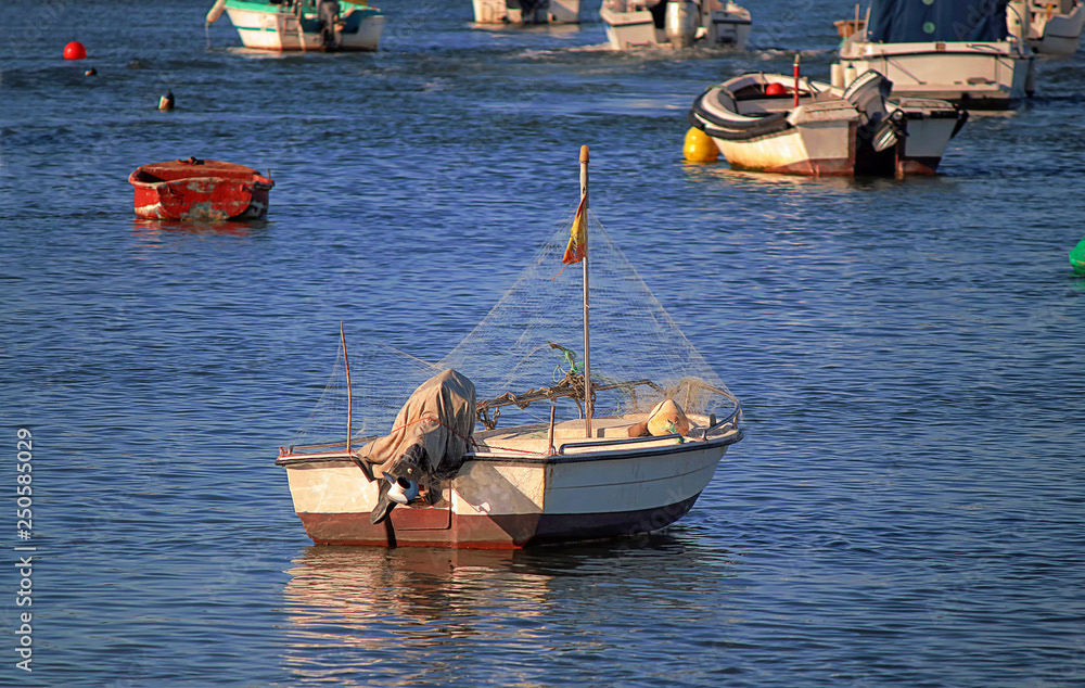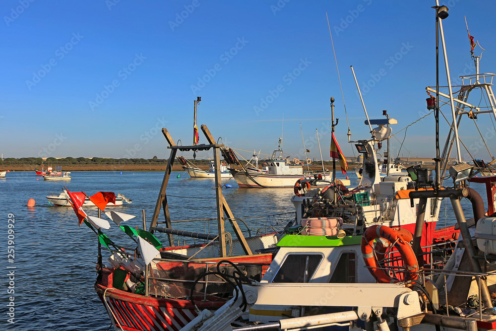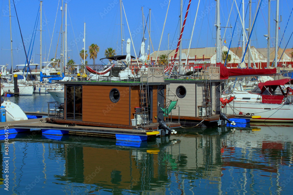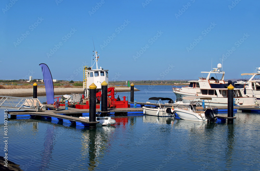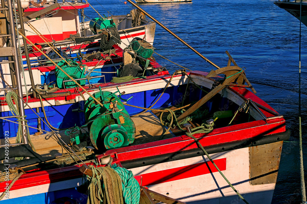Piers and marine ports. Boats moored in ports and piers, fishing, recreational and cargo boats