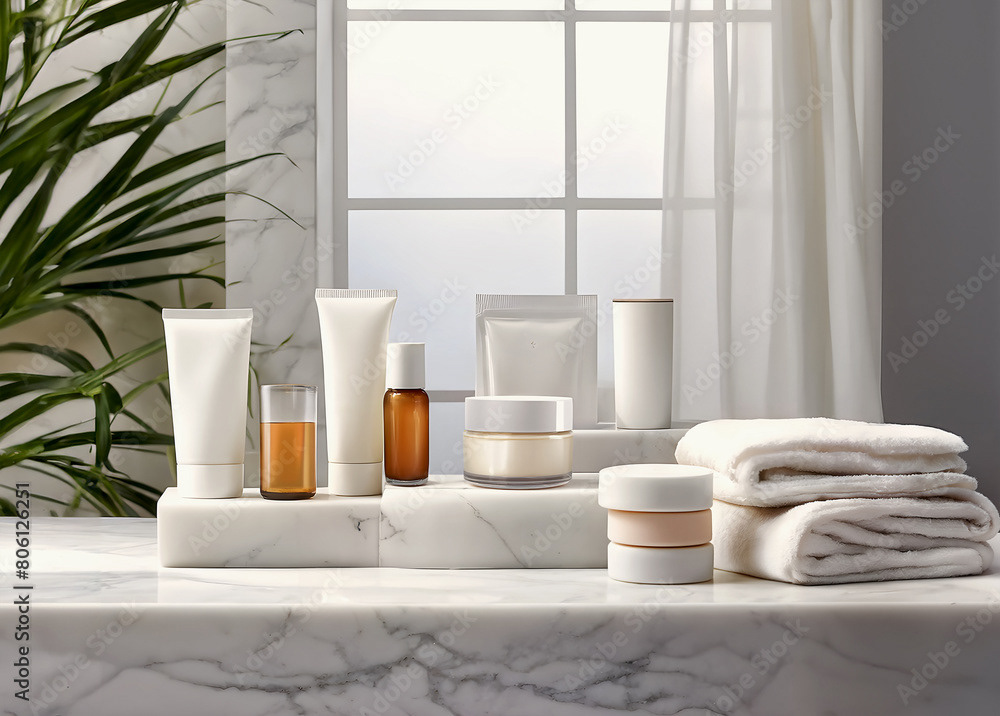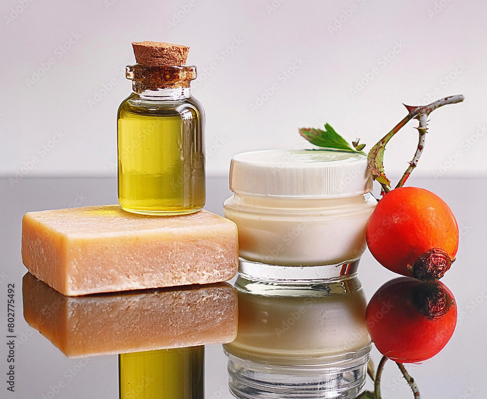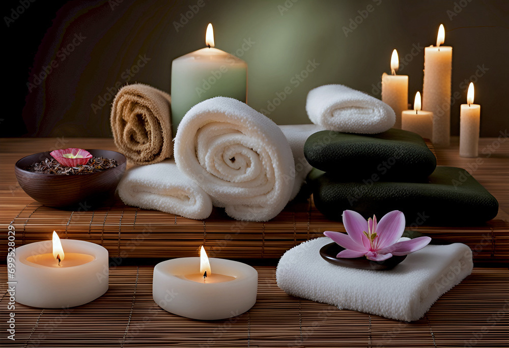 Natural skincare products, beauty spa treatment, zen stones, Self-Care, relax and wellness concept